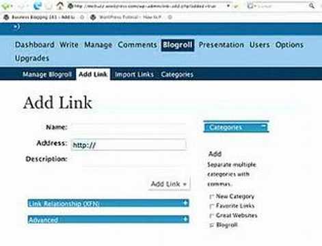 WordPress Tutorial - Make Menus of Links With the Blogroll 2
